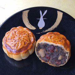 ナッツやドライフルーツたっぷりの胡麻あんを薄皮で包み艶よく焼き上げました。